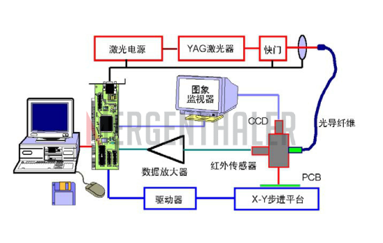 為了監(jiān)測和控制焊錫的質(zhì)量,先進的激光焊錫設(shè)備配備有實時溫度檢測單元,將焊點的溫度通過紅外傳感器實時檢測出來,模數(shù)轉(zhuǎn)換送入控制計算機,通過溫度的變化情況監(jiān)測焊點的形成過程,或?qū)崟r改變激光功率控制焊點的形成和質(zhì)量。溫度上升過快時,可立即切斷激光輸出,保證不燒毀器件的引線。圖象監(jiān)視器可以觀察激光與引線的為位置情況以及焊接的過程,可對焊錫過程錄像或拍照。激光器的輸出功率由控制計算機設(shè)定并可程序控制,保證加熱能量的精確性。