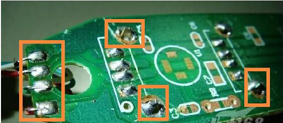 6、焊接點凝固的過程中,切記不要用手觸碰焊接點。焊接點在未完全凝固前,即使有很小的振動也會使焊點變形,引起虛焊。因此,在烙鐵頭撤離之前對焊接件要予以固定,如用鑷子夾持,或烙鐵頭撤離之后快速用嘴吹氣,采取這些做法的目的,就是縮短焊點凝固的時間。