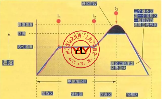 (圖二、理論上理想的回流曲線由四個(gè)區(qū)組成,前面三個(gè)區(qū)加熱、最后一個(gè)區(qū)冷卻)