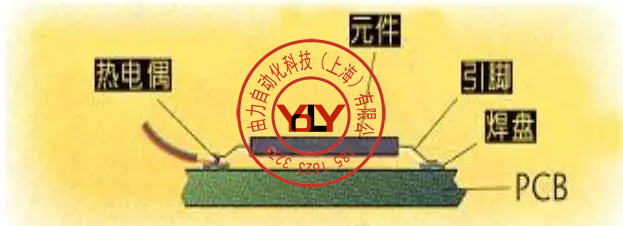 (圖一、將熱電偶尖附著在PCB焊盤(pán)和相應(yīng)的元件引腳或金屬端之間)