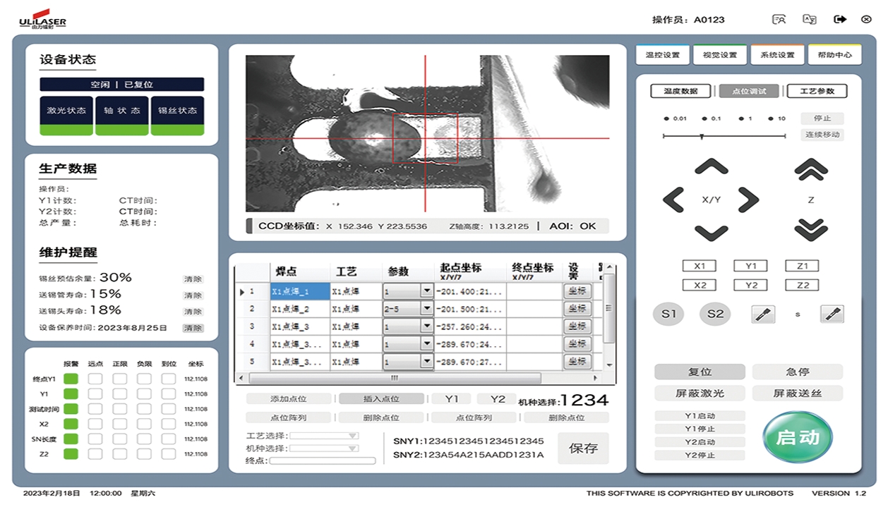 ULiROBOTS激光恒溫焊錫系統(tǒng),以滿足市場(chǎng)需求:包括直接半導(dǎo)體激光、紅外在線溫度計(jì)、恒溫單聚焦焊接頭、單聚焦循環(huán)照明光源、自動(dòng)送絲系統(tǒng)和恒溫激光焊接軟件。這種模塊可以提前在焊接軟件中設(shè)置多個(gè)溫度范圍。焊接過(guò)程中,激光閉環(huán)溫度控制系統(tǒng)可以實(shí)時(shí)測(cè)量焊點(diǎn)的溫度。當(dāng)焊點(diǎn)溫度達(dá)到設(shè)定溫度上限時(shí),激光功率會(huì)自動(dòng)調(diào)節(jié)并降低,以防止焊點(diǎn)溫度過(guò)高造成熱損壞。它具有以下特點(diǎn)和優(yōu)點(diǎn):