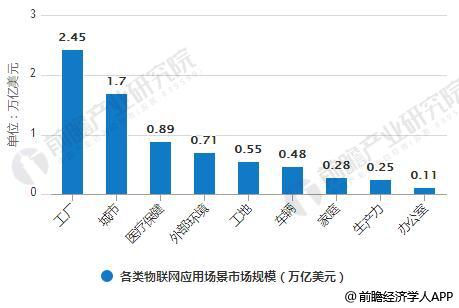 物聯(lián)網(wǎng)應(yīng)用場景分為工廠、城市、醫(yī)療保健、外部環(huán)境、工地、車輛、家庭、人類生產(chǎn)力、辦公室九類, 其中智慧家庭的市場規(guī)模將達(dá)2750億美元。