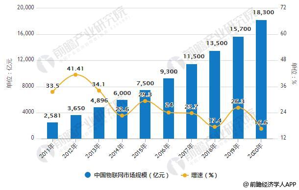 2011-2020年中國物聯(lián)網(wǎng)市場規(guī)模統(tǒng)計(jì)及增長情況預(yù)測