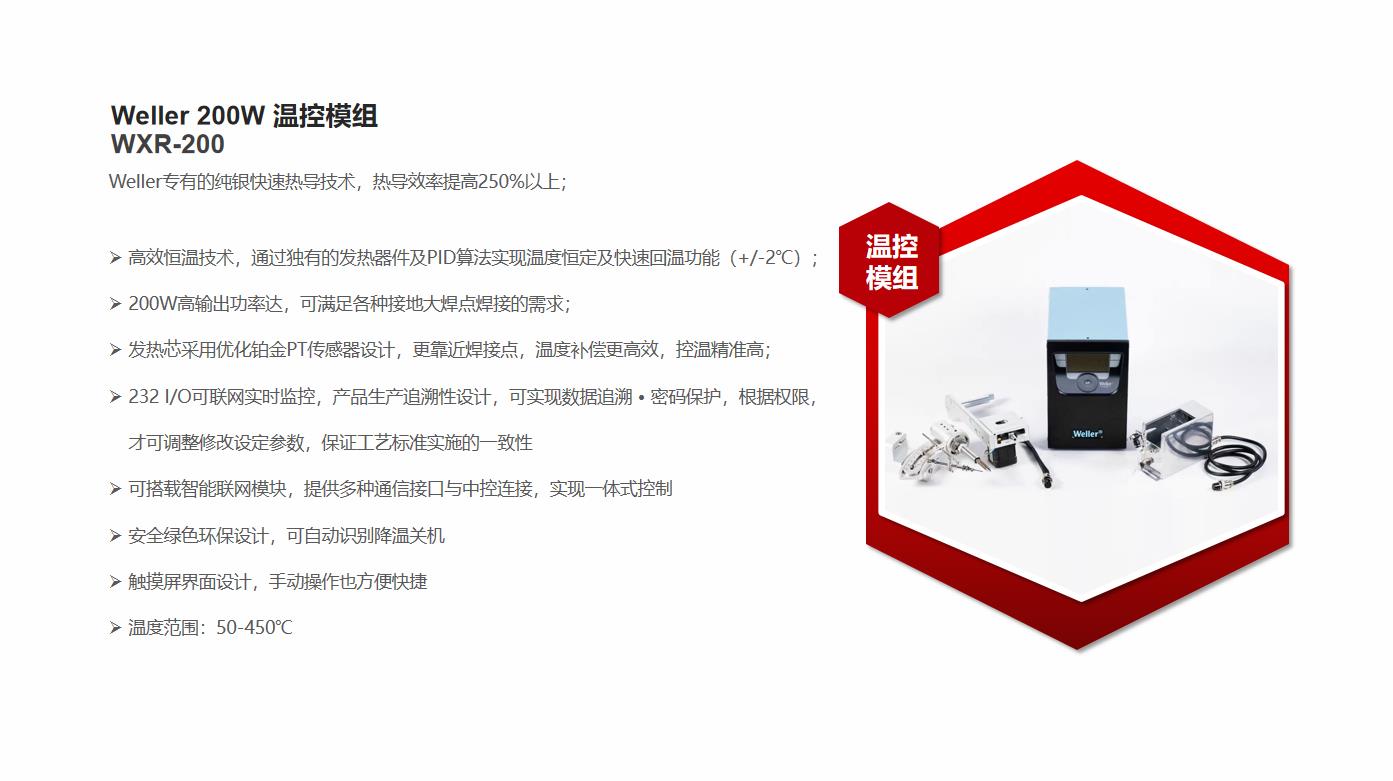 l 德國Weller 200W大功率焊接模組,升溫速率較友商快250%,多種焊頭可選擇;
