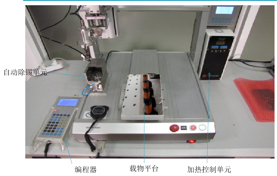 4)當(dāng)檢測(cè)機(jī)構(gòu)檢測(cè)到產(chǎn)品到位時(shí)、焊錫機(jī)構(gòu)執(zhí)行自動(dòng)焊錫。(檢測(cè)到無產(chǎn)品時(shí)、停止自動(dòng)焊錫)